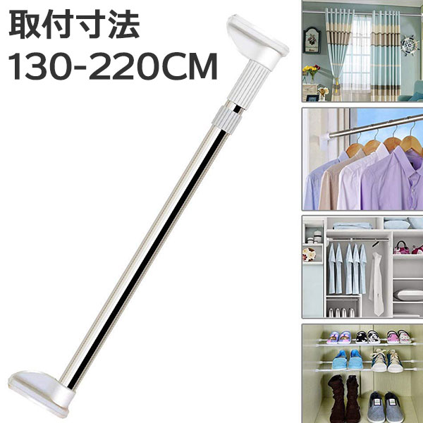 つっぱり棒 突っ張り棒 多機能・強力 室内物干し 風呂 ステンレス鋼 伸縮 取付寸法 130-220cm 超強力伸縮棒 つっぱり棒・つっぱり棚