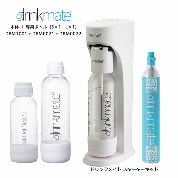 ☆専用ボトル2本セット!! drinkmate DRM1001 ホワイト + 専用ボトル(Sサイズ×1、Lサイズ×1) ドリンクメイト 炭酸飲料メーカー(炭酸水メーカー) / スターターキット・ワインに注入すればスパークリングワインが作れる 【直接炭酸注入】
